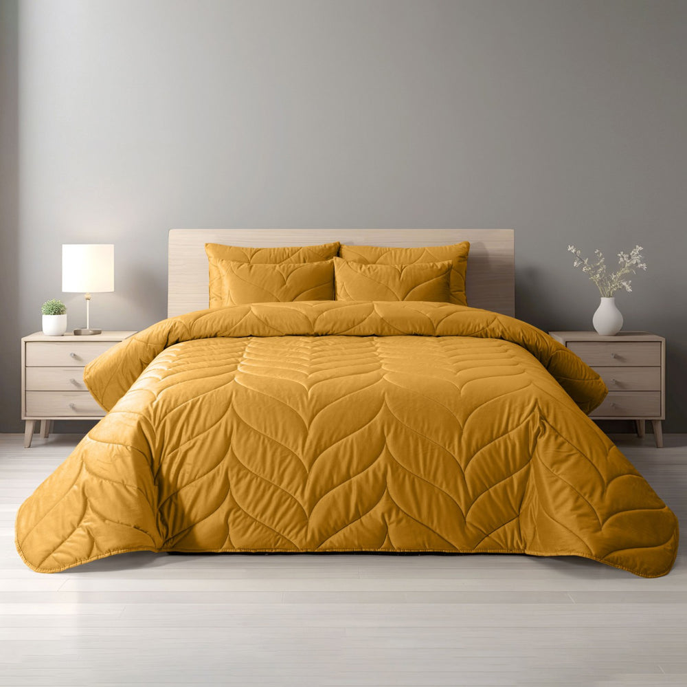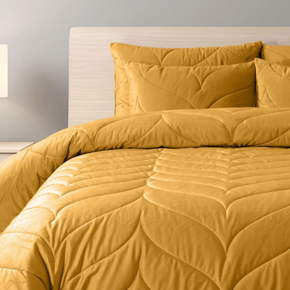 Adicione um toque de requinte e bem-estar ao seu quarto com o Edredon Velvet Lotus. Confeccionado em veludo macio de alta qualidade, oferece uma textura suave e envolvente que convida ao descanso. O enchimento de 350g/m² garante calor e aconchego ideais para as noites mais frias, enquanto o seu padrão “Lotus” proporciona um visual moderno e sofisticado.